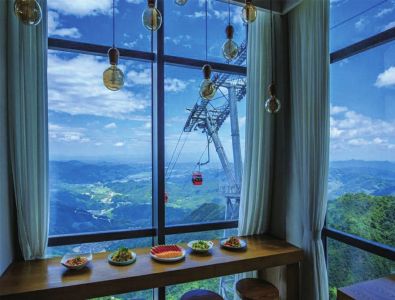 葛仙村度假區(qū)的美食一定不能錯(cuò)過,來(lái)到二樓的云端餐廳,透過180度全景落地玻璃,可以將葛仙村的美景一覽無(wú)余,原木色餐桌搭配星空頂,臨坐在窗前,品嘗各色美食補(bǔ)充能量,與家人或朋友把酒言歡,享受味蕾上的滿足感。