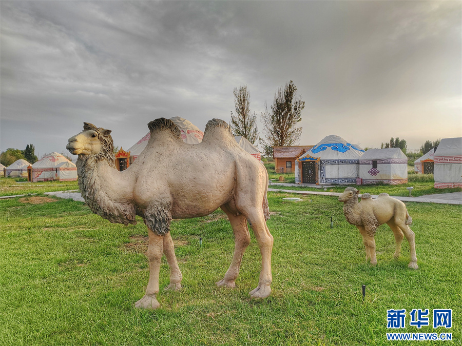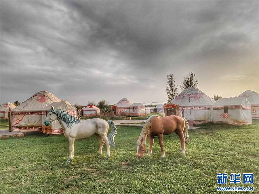 造型獨(dú)特的雕塑與蒙古包相互映襯,盡顯草原文化魅力。