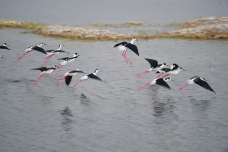 忻州市有“沿黃、汾河、滹沱河”等重要“鳥道”,圖為展翅翱翔的黑翅長(zhǎng)腳鷸。