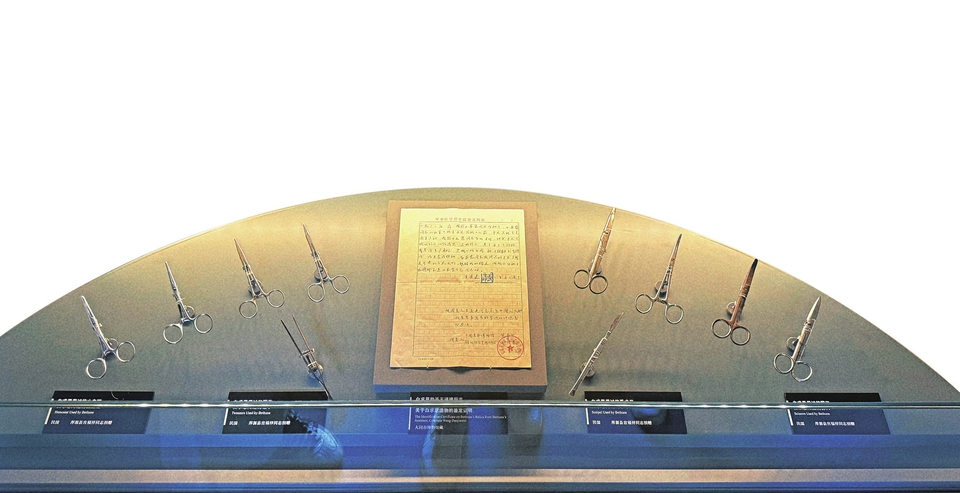 大同紅色記憶館內(nèi)有一個(gè)專屬展廳,珍藏著白求恩同志曾經(jīng)用過的12件醫(yī)療器械。這些醫(yī)療器械是白求恩從美國帶來,并曾在大同靈丘抗戰(zhàn)前線使用過的。館內(nèi)負(fù)責(zé)人任冬介紹,這些醫(yī)療器械是由大同市渾源縣王莊堡村退伍老兵宮福祥老人于1984年捐贈給雁北文物工作站的。如今,它們已經(jīng)成為該館的“鎮(zhèn)館之寶”,見證了白求恩大夫在抗戰(zhàn)前線的無私奉獻(xiàn)和國際主義精神。