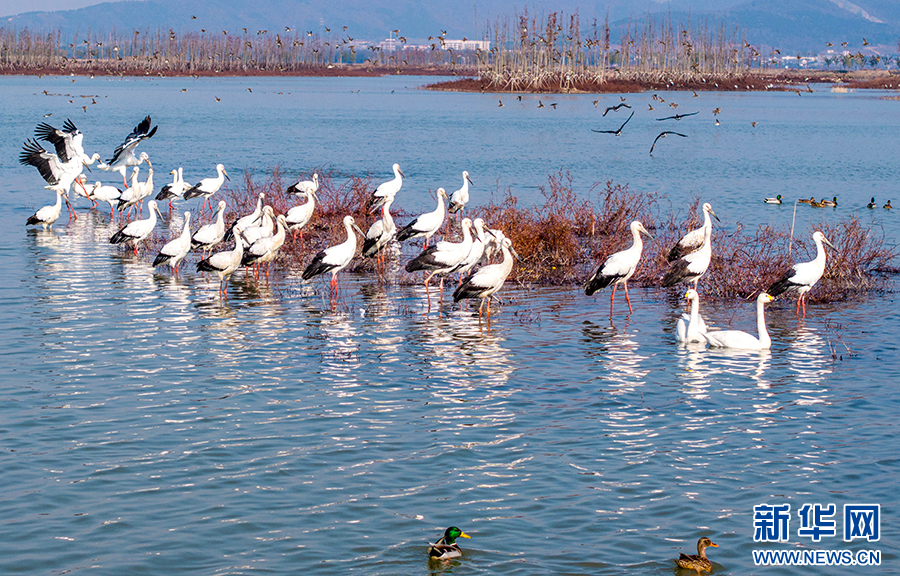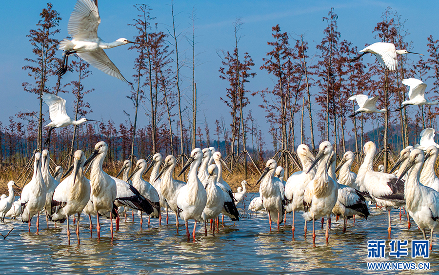 近年來,廬江縣加大黃陂湖濕地保護力度,4萬多畝的濕地環(huán)境得到較大改善。每年冬季,東方白鸛、白鶴等大量珍稀候鳥都按時來此過冬,萬鳥齊飛的壯觀場面已經(jīng)成為廬江縣黃陂湖濕地最靚麗的風(fēng)景。新華網(wǎng)發(fā)(左學(xué)長 攝)