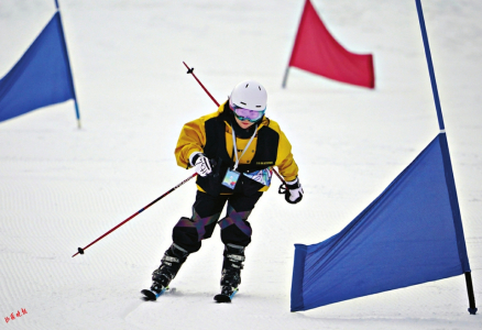8.選手在運城市2025年全民健身滑雪賽上激情角逐。