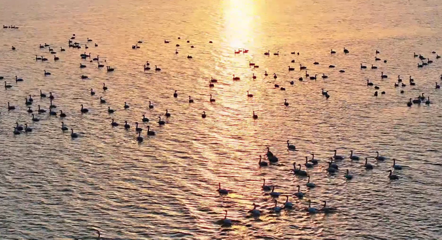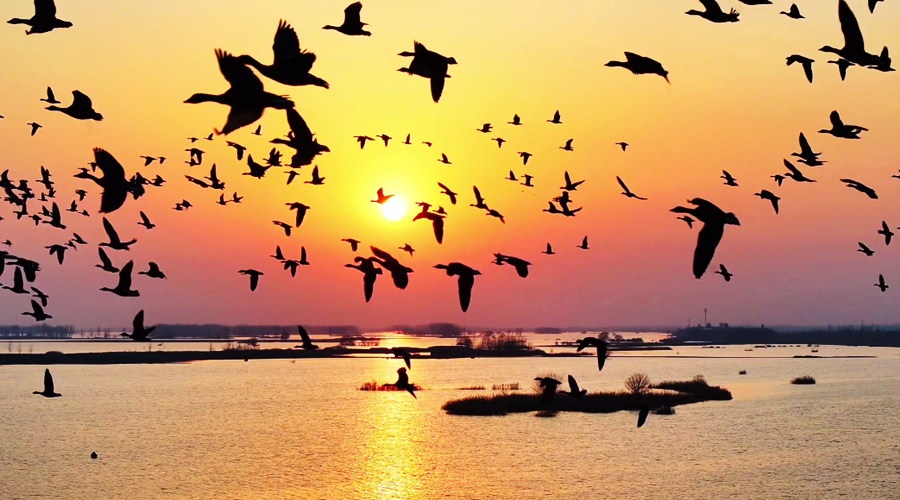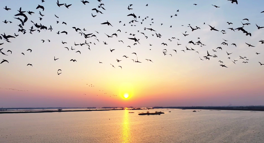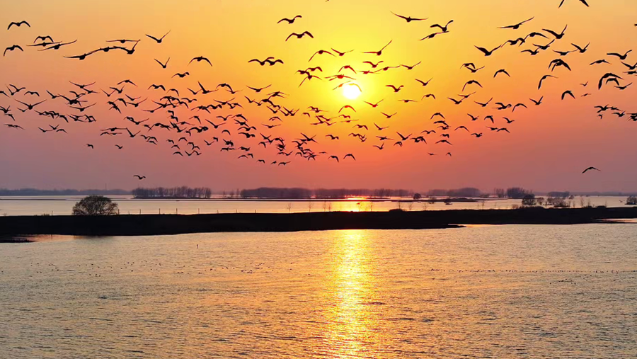 ?初春時(shí)分,在夕陽余暉映照下,安徽省潁上縣秋家湖濕地被染上一層夢幻般的色彩。放眼望去,成群飛鳥與漫天霞光融為一體,繪就出一幅壯美而靈動(dòng)的生態(tài)畫卷。(徐紅梅)