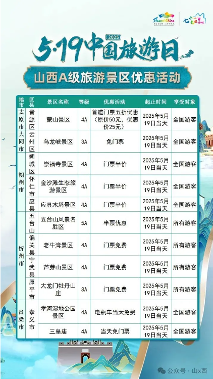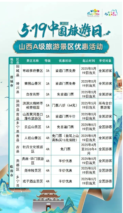 5·19中國(guó)旅游日 | 山西A級(jí)旅游景區(qū)面向全國(guó)游客優(yōu)惠