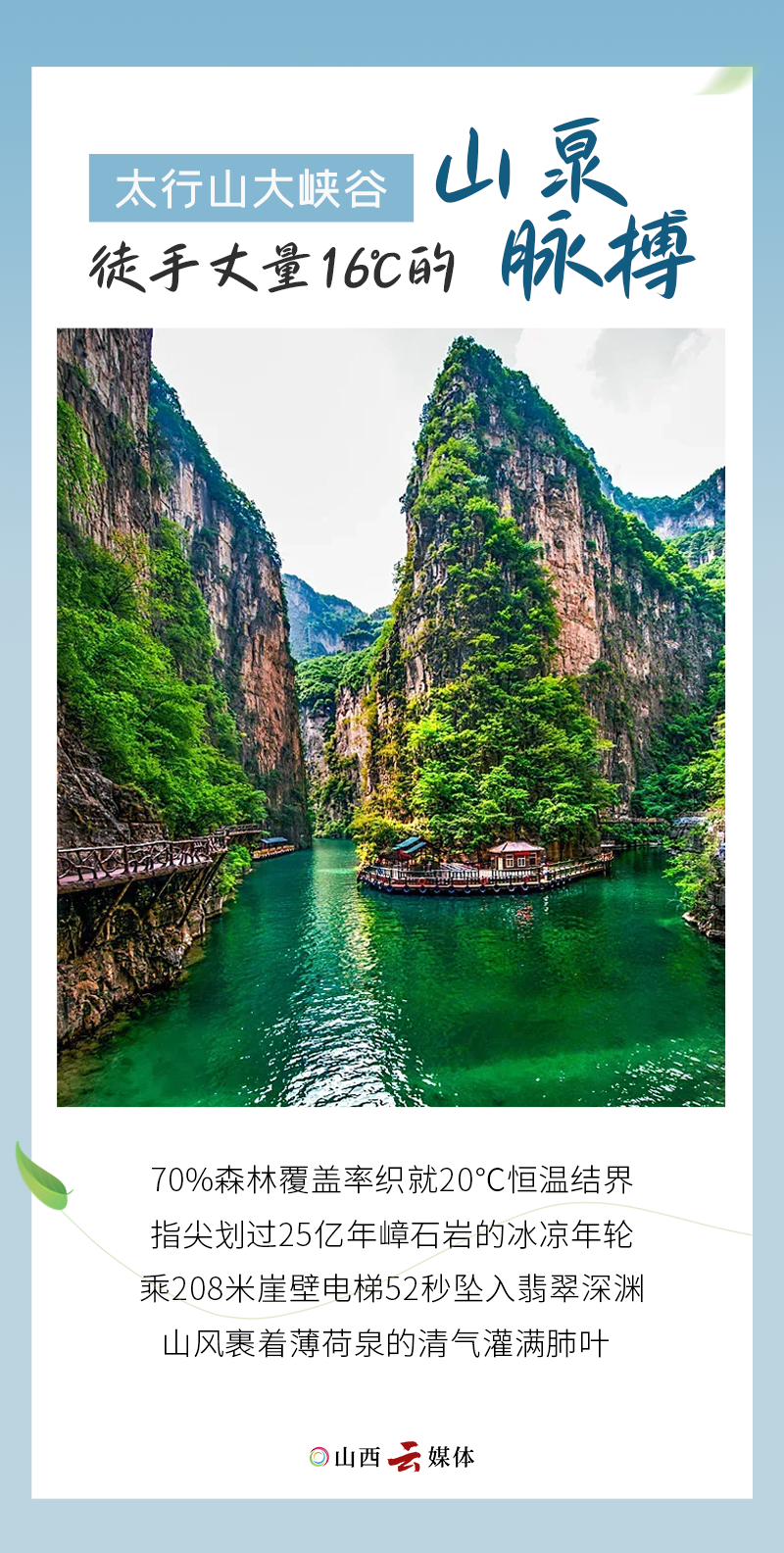 近日,全國多地持續(xù)高溫,不少地方氣溫高達(dá)40℃以上,而山西卻以20℃的峽谷穿堂風(fēng)、萬年冰洞的寒冰棱鏡,為盛夏高溫按下了暫停鍵。在山西,空調(diào)不如山風(fēng),WiFi不如溪鳴,暑氣被太行山脊攔腰斬?cái)啵涣粝聺M目青翠與心尖清涼。