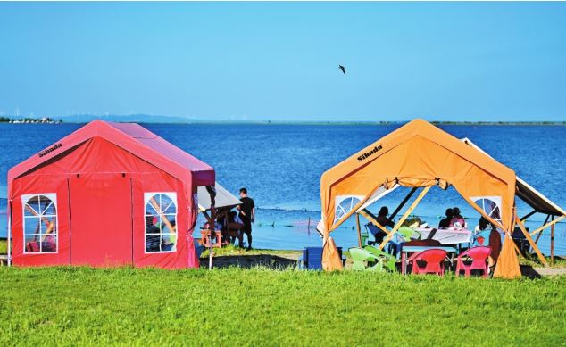 近年來,哈爾濱不斷挖掘歷史底蘊(yùn),加快歷史文化街區(qū)改造和老建筑活化利用。文旅新題材新亮點(diǎn)不斷涌現(xiàn),哈爾濱旅游逐步實(shí)現(xiàn)從“冬季爆點(diǎn)”向“四季長(zhǎng)紅”轉(zhuǎn)型。圖為人們?cè)诠枮I市松花江畔的帳篷中消暑休閑。