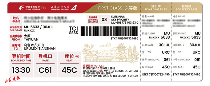 融合太原文化地標(biāo) 東航推出山西特色登機(jī)牌