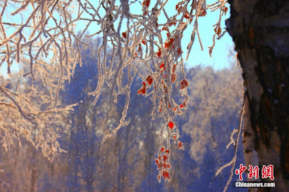 連日來,新疆北部持續(xù)低溫,哈巴河縣受寒冷天氣的影響,出現(xiàn)了大面積霜掛美景。一棵棵白樺樹被妝點成銀白色,晶瑩剔透,潔白無瑕,置身其中,如同進(jìn)入夢幻世界一般。圖為清晨的哈巴河縣銀裝素裹,云霧繚繞。 劉是何 攝