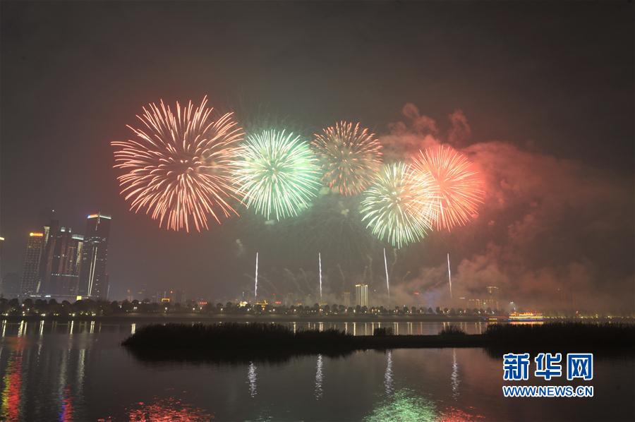2017年1月1日夜晚,長沙橘子洲附近湘江上空綻放絢麗焰火。當(dāng)晚,湖南長沙橘子洲舉行焰火晚會(huì)慶祝新年到來。整場焰火晚會(huì)主題為“多彩星城、魅力長沙”,焰火燃放時(shí)間約20分鐘。 新華社記者 龍弘濤攝
