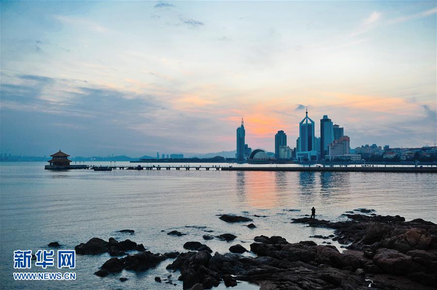 1月10日在青島棧橋景區(qū)黃昏景色。當日,山東省青島市天氣晴好,黃昏時分沿海一帶景色迷人。 新華社發(fā)(王海濱 攝)
