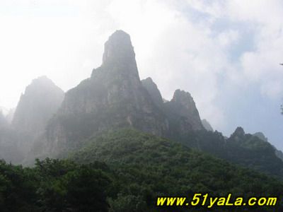 五老峰史稱東華山,歷史上為北方道教名山,海拔1809.3米,奇峰險(xiǎn)峻,需攀鏈而上,屬丹霞地貌。這里是層層峰巒,森林古木,各種生物覆蓋著整個山野?;t草綠,山光水色,風(fēng)光旖旎非凡,故有“北有五臺觀庫存宇,南在五老看風(fēng)光”之說。游人往縣城西南遠(yuǎn)眺,見有東錦屏峰、西錦屏峰、太乙坪峰、棋盤山峰四山峰仙態(tài)神姿,隱現(xiàn)于云煙蒼茫之中,將高1809.3米的玉柱峰環(huán)抱其中,“有偃蹇傴樓之伏”,猶如五位老人抱拳作揖迎貴賓之勢,故名五老峰。