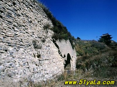 雄關(guān)雁門,居“天下九塞”之首(《呂氏春秋》)。從戰(zhàn)國時(shí)期的趙武靈王起,歷代都把此地看作戰(zhàn)略要地。趙置雁門郡,此后多以雁門為郡、道、縣建制戍守。雁門關(guān)之稱,始自唐初。因北方突厥崛起,屢有內(nèi)犯,唐駐軍于雁門山,于制高點(diǎn)鐵裹門設(shè)關(guān)城,戍卒防守?!短茣?middot;地理志》描述這里“東西山巖峭拔,中有路,盤旋崎嶇,絕頂置關(guān),謂立西徑關(guān),亦曰雁門關(guān)?!焙蠼?jīng)五代十國、宋、遼、金、元約四百余載。元朝設(shè)千戶所,關(guān)城被毀。明代吉安侯陸享于洪武七年(1374)自監(jiān)民工筑新關(guān)于舊關(guān)東北十里處的要道。南距代城縣四十余里,北鄰廣武古城二十一里,地勢(shì)更為險(xiǎn)要。明末清初的著名學(xué)者顧炎武曾親臨此地。他寫道“雁門重關(guān),山巒在演,霞飛云舉,兩山對(duì)峙,其形如門,而飛雁出于其間?!痹撽P(guān)城,周長(zhǎng)二里,墻高二丈,石座磚身,雉堞為齒,洞口三重,曰東門、西門、小北門。東門上筑樓臺(tái),曰雁樓,門額嵌石匾一方,橫書“天險(xiǎn)”(即“天險(xiǎn)”)。西門上筑有楊六郎廟,門額嵌石匾一方,橫書“地利”(即“地利”)。小北門未設(shè)頂樓,但磚石結(jié)構(gòu),格外雄固。門額石匾橫刻:“雁門關(guān)”三字。洞門兩側(cè)鑲嵌磚鐫楷書檢聯(lián):“三關(guān)沖要無雙地,丸塞尊崇第一關(guān)?!睎|門外北側(cè)建有“靖邊寺”祀戰(zhàn)國時(shí)代的軍事家趙將李牧。西門外右側(cè)建有關(guān)帝廟。關(guān)城正北置有駐軍營房,東南設(shè)有練兵教場(chǎng)。整個(gè)關(guān)城建筑,虎踞龍盤,雄偉壯觀。明清以后,關(guān)城雖屢有重建。但隨著我多民族統(tǒng)一國家疆域的逐步形成,內(nèi)長(zhǎng)城作為“內(nèi)邊”的作用已經(jīng)失去,所屬的雁門雄關(guān)也隨之荒廢?,F(xiàn)在的關(guān)城僅在東門、西門、小北門三個(gè)門洞和靖邊寺前的一對(duì)石獅,一副石旗桿,明鐫李牧碑石一塊,以及寺后的數(shù)株青松。