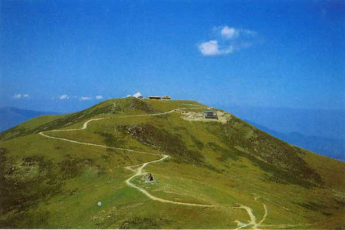 五臺(tái)山的西臺(tái)人稱掛月峰,又名明月山,海拔2773米?!肚鍥錾街尽份d:西臺(tái)“頂廣平,月墜峰巔,儼若懸鏡,因以為名”。臺(tái)頂有泉,群山拱合,巖谷幽深;臺(tái)頂亦有寺,名叫法雷寺,內(nèi)供獅子吼文殊,其寓意是讓強(qiáng)大的獅子吼叫聲驚醒眾生。整個(gè)山勢(shì)峰巒疊嶂,如同孔雀開屏。