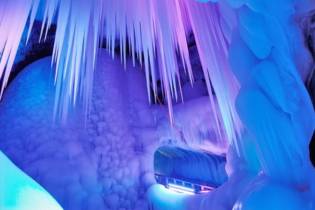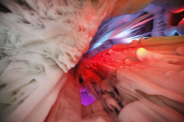 專家們稱,該冰洞位列全國(guó)一萬(wàn)多個(gè)洞穴中僅有的九個(gè)冰洞之首。洞內(nèi)制冷機(jī)制最強(qiáng)、冰儲(chǔ)量最多,現(xiàn)開發(fā)近百米。分成上下五層,看冰洞須穿棉衣、戴手套,小心翼翼地游覽。通過(guò)鉆冰洞,下冰樓梯,過(guò)冰棧,可到各層觀光。每層可容納數(shù)十人。洞內(nèi)四周全是冰。由冰形成的冰柱、冰簾、冰瀑、冰花、冰佛、冰床、冰鐘、冰人、冰菩薩等,千奇百怪、不一而足。洞內(nèi)大大小小的景致或玲瓏剔透,或晶瑩奪目,或婀娜多姿,或雄偉壯麗,無(wú)不令人驚嘆,堪稱一個(gè)冰的絕妙世界。