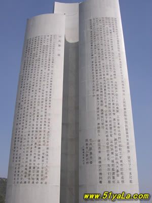 高40公尺的主碑 ,形如一把鋒利的刺刀 。主碑的三個(gè)面上,分別鐫刻著彭真、徐向前、薄一波的題詞。彭真的題詞是“戰(zhàn)績(jī)輝煌,永垂史冊(cè)”;徐向前的題詞是“參加百團(tuán)大戰(zhàn)的烈士們永垂不朽”;薄—波的題詞是“百團(tuán)大戰(zhàn),抗日戰(zhàn)爭(zhēng)中最光輝的一頁(yè),必將載諸史冊(cè),永放光芒?!?/p>