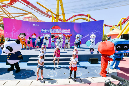 “國(guó)資小新”攜手中國(guó)華電“華小電”、中國(guó)電建“吉娃”、中國(guó)電科“小推”、華潤(rùn)集團(tuán)“嗨皮潤(rùn)”、中國(guó)建筑“藍(lán)寶”、中國(guó)石化“小石頭”、南網(wǎng)電網(wǎng)“小赫茲”、中國(guó)核電“華龍寶寶”、中國(guó)建材“小料”、中遠(yuǎn)海運(yùn)“PANDA”、中化集團(tuán)“小化”、中國(guó)鐵建“福鹿娃”等12家央企卡通形象,打破次元壁,卡通雕塑落地北京歡樂谷,傾力打造與公眾零距離的“央企卡通部落”。它們賣萌有度、服務(wù)貼心,接地氣、聚人氣。在來(lái)自政、企、媒、學(xué)等領(lǐng)域的近300位嘉賓及觀眾的見證下,央企新聞宣傳負(fù)責(zé)人為各自的卡通雕塑揭幕。從平面化、虛擬化的卡通形象到立體化、實(shí)物化的卡通雕塑,“國(guó)資小新”與央企卡通以全新的面貌和大家見面,并常駐北京歡樂谷。