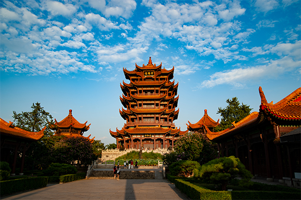 藍天白云下的黃鶴樓公園