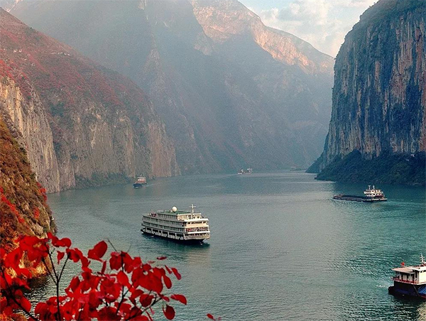 游船駛過秀美的長江三峽