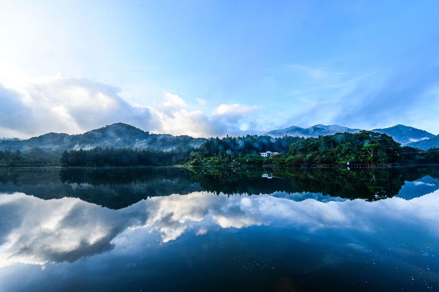 這是晨曦中的海南熱帶雨林國家公園尖峰嶺和尖峰嶺天池景色。