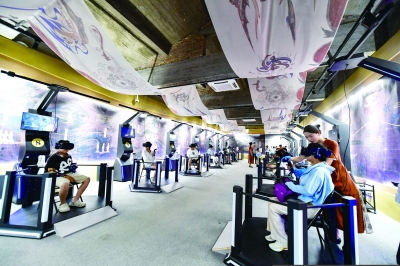 7月22日,游客線下體驗“尋境敦煌——數(shù)字敦煌沉浸展”。 “尋境敦煌”綜合運(yùn)用虛擬現(xiàn)實、三維建模、游戲引擎的物理渲染和全局動態(tài)光照等新技術(shù),高精度立體還原了莫高窟第285窟。游客戴上VR眼鏡,不僅可以零距離觀賞壁畫、360度自由探索洞窟細(xì)節(jié),還能“飛升”到窟頂,身臨其境參與壁畫故事情節(jié),沉浸式感受敦煌文化的魅力。 新華社記者 郎兵兵/攝