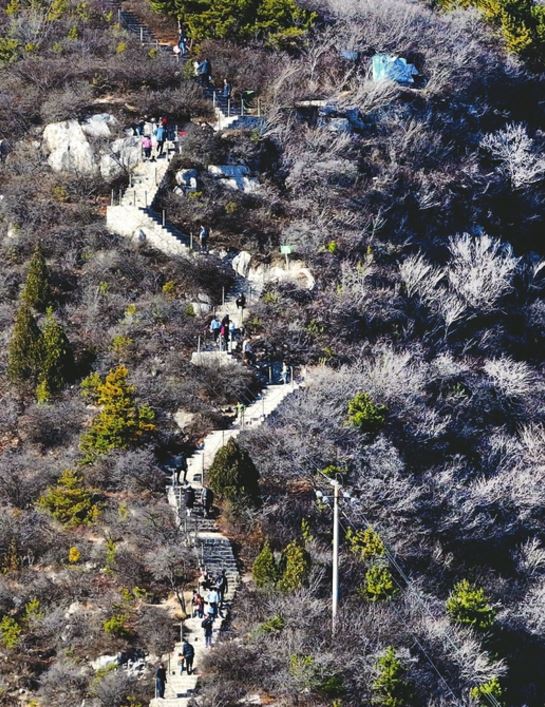 十二月一日風(fēng)和日麗,眾多游客攀登崛圍山。站在山頂俯瞰群山連綿起伏,令人心曠神怡。