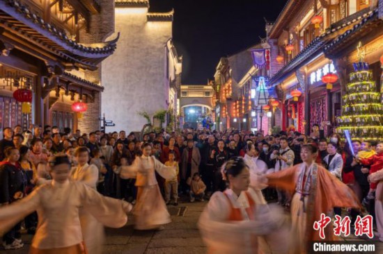 差異化定位下,洪江古商城以“商旅融合”破局:景區(qū)通過沉浸式夜游、非遺手作體驗、國風(fēng)戲曲展演等多元業(yè)態(tài),吸引全國游客深度感受“千年商都”魅力。璀璨燈火映照下,這座起源于春秋、成形于盛唐、鼎盛于明清的商都,向各地游客再現(xiàn)一代代洪商演繹的商道傳奇,煥發(fā)出文旅融合新生機。