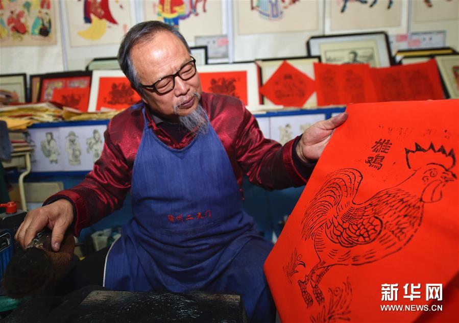 春節(jié)期間,山西省新絳縣的絳州木版年畫傳承人吳百鎖忙得不可開交,來購買“吉祥如意”“雄雞一唱天下白”等主題年畫的顧客絡(luò)繹不絕。山西省非物質(zhì)文化遺產(chǎn)絳州木版年畫發(fā)端于宋金,興盛于明清,從選料到雕刻再到上色都非常講究,一幅年畫的制作需要七八道精細工序。隨著時代的變遷,目前已鮮有專職雕刻、印制年畫的匠人。擁有嫻熟雕刻技藝的吳百鎖在傳承傳統(tǒng)工藝的基礎(chǔ)上,積極創(chuàng)作現(xiàn)代題材的作品,希望通過自己的創(chuàng)新讓更多少年兒童了解并愛上木版年畫,讓這門幾乎失傳的技藝綻放新的光彩。新華社記者 曹陽 攝