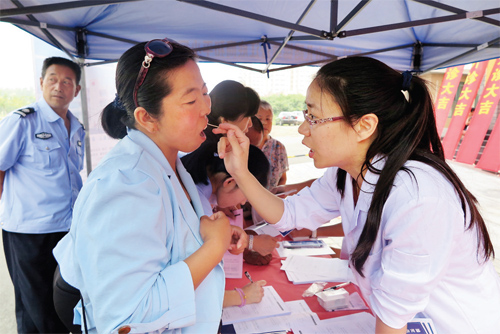 據(jù)了解,我市“幸福啟航·口腔健康公益行”活動由忻州美源口腔醫(yī)院負(fù)責(zé)執(zhí)行實施。該醫(yī)院是山西紅十字口腔醫(yī)院在我市開設(shè)的第一所分支機構(gòu),依托450名專業(yè)口腔醫(yī)護團隊,配備國際頂尖的牙科診療設(shè)備,讓忻州市民享受到國際水準(zhǔn)的口腔醫(yī)療體驗。據(jù)悉,忻州美源口腔醫(yī)院將成立專家組深入社區(qū)為廣大市民開展免費口腔檢查,為牙列不齊、缺失牙的貧困家庭婦女兒童,提供每例最高5000元的醫(yī)療資助服務(wù)。該院負(fù)責(zé)人表示,希望通過本次活動能夠傳播正確的口腔健康觀念,教授口腔健康保健知識,讓我市更多的市民有一口好牙。圖為口腔專家現(xiàn)場為市民檢查口腔(張志遠(yuǎn) 王菲)