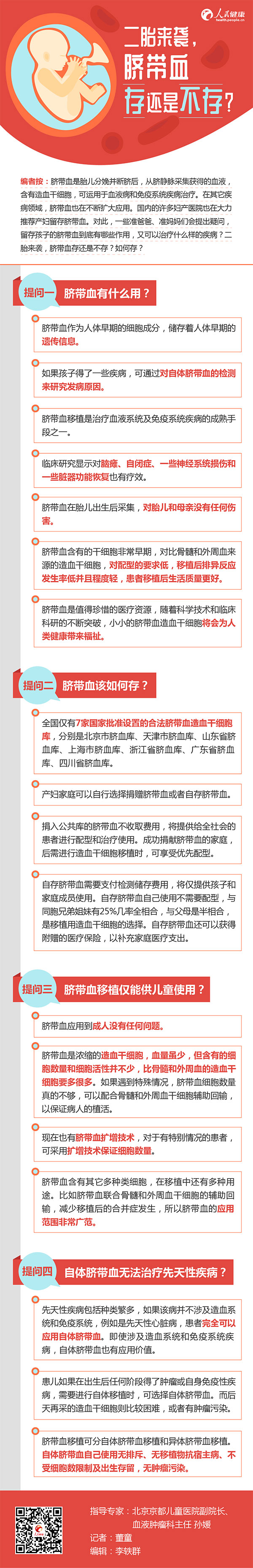 編者按:臍帶血是胎兒分娩并斷臍后,從臍靜脈采集獲得的血液,含有造血干細(xì)胞,可運(yùn)用于血液病和免疫系統(tǒng)疾病治療。在其它疾病領(lǐng)域,臍帶血也在不斷擴(kuò)大應(yīng)用。國(guó)內(nèi)的許多婦產(chǎn)醫(yī)院也在大力推薦產(chǎn)婦留存臍帶血。對(duì)此,一些準(zhǔn)爸爸、準(zhǔn)媽媽們會(huì)提出疑問(wèn),留存孩子的臍帶血到底有哪些作用,又可以治療什么樣的疾???二胎來(lái)襲,臍帶血存還是不存?如何存?