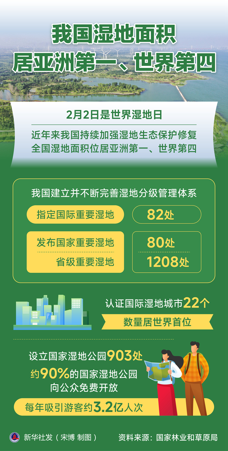 新華社北京2月2日電(記者黃垚)2月2日是世界濕地日。記者當(dāng)天從國(guó)家林業(yè)和草原局獲悉,近年來(lái)我國(guó)持續(xù)加強(qiáng)濕地生態(tài)保護(hù)修復(fù),全國(guó)濕地面積位居亞洲第一、世界第四,濕地保護(hù)形成重點(diǎn)治理和分類(lèi)保護(hù)相結(jié)合的新格局。