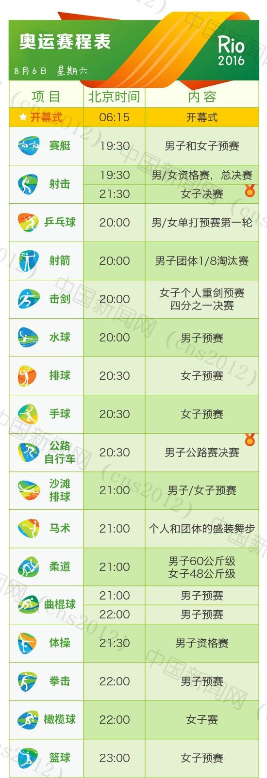 里約奧運(yùn)會(huì)完整賽程表