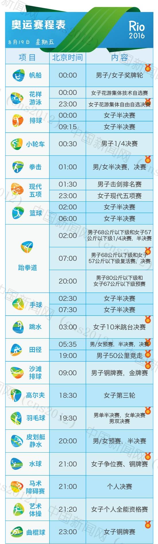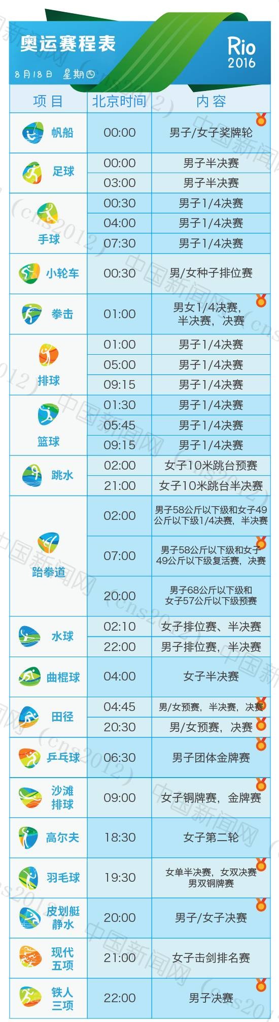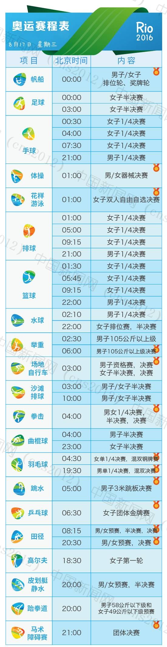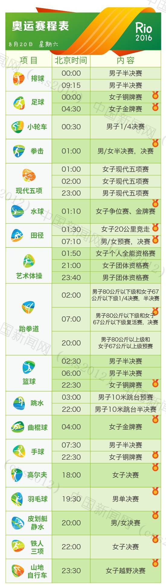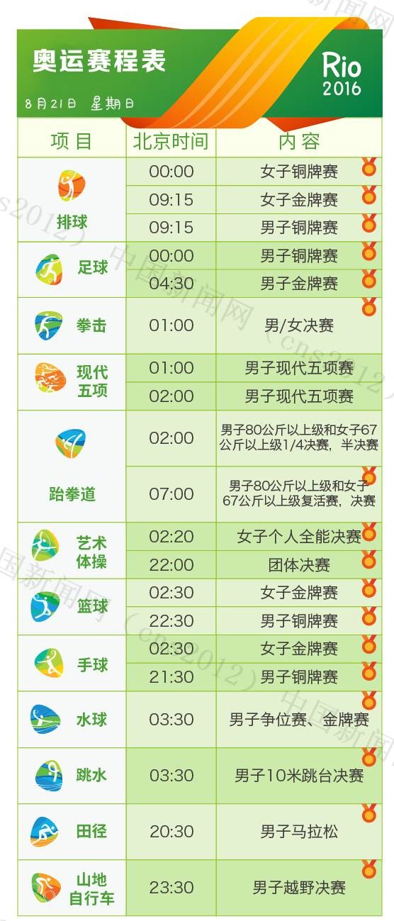 里約奧運(yùn)會(huì)完整賽程表