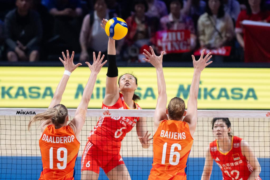 首局比賽中國(guó)隊(duì)失誤較多,荷蘭隊(duì)取得13:6的領(lǐng)先。中國(guó)隊(duì)請(qǐng)求暫停后迅速調(diào)整狀態(tài),一度將分差縮小至3分,但最終還是以21:25告負(fù)。第二局,中國(guó)隊(duì)在開局落后的情況下依靠多點(diǎn)進(jìn)攻在后半段反超比分,以25:23扳平大比分。士氣大振的中國(guó)女排在接下來(lái)的比賽中掌握了主動(dòng),進(jìn)攻更加積極,以25:23、25:21連下兩局贏得勝利。
