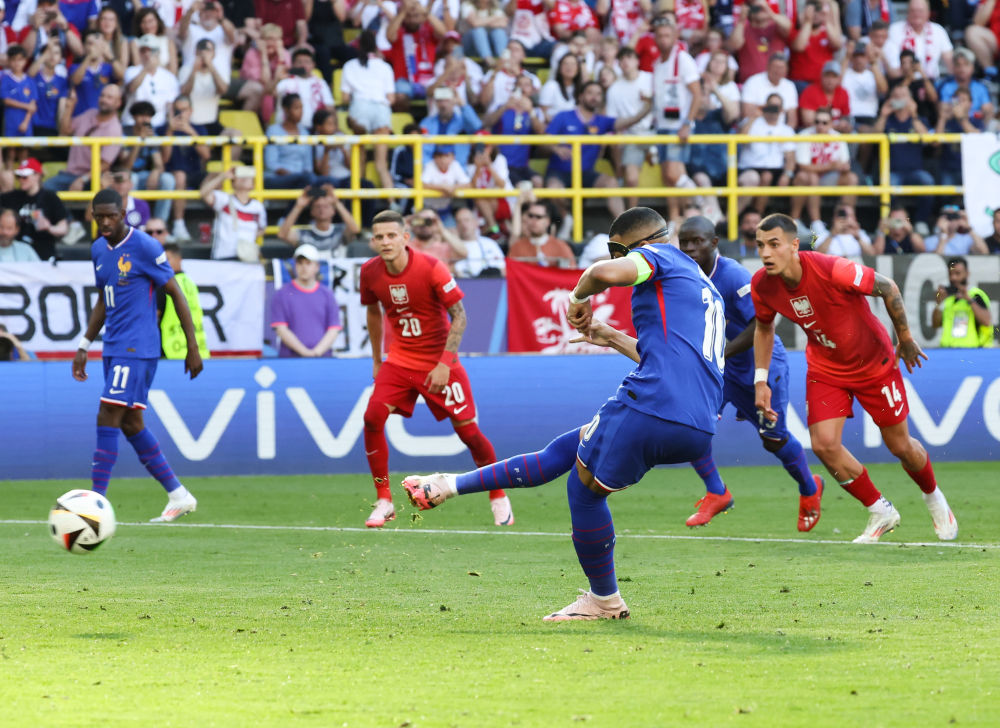 法國頭號球星姆巴佩本場復出成為全場焦點,他在下半場通過點球建功,打入了個人在歐錦賽上的首粒進球。比賽尾聲階段,波蘭隊同樣獲得一粒點球,萊萬多夫斯基主罰命中將比分定格為1:1。