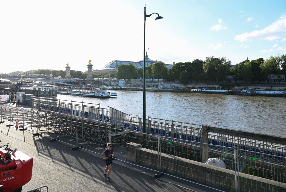 這是塞納河畔的開幕式看臺(7月4日攝)。新華社記者 賀長山 攝
