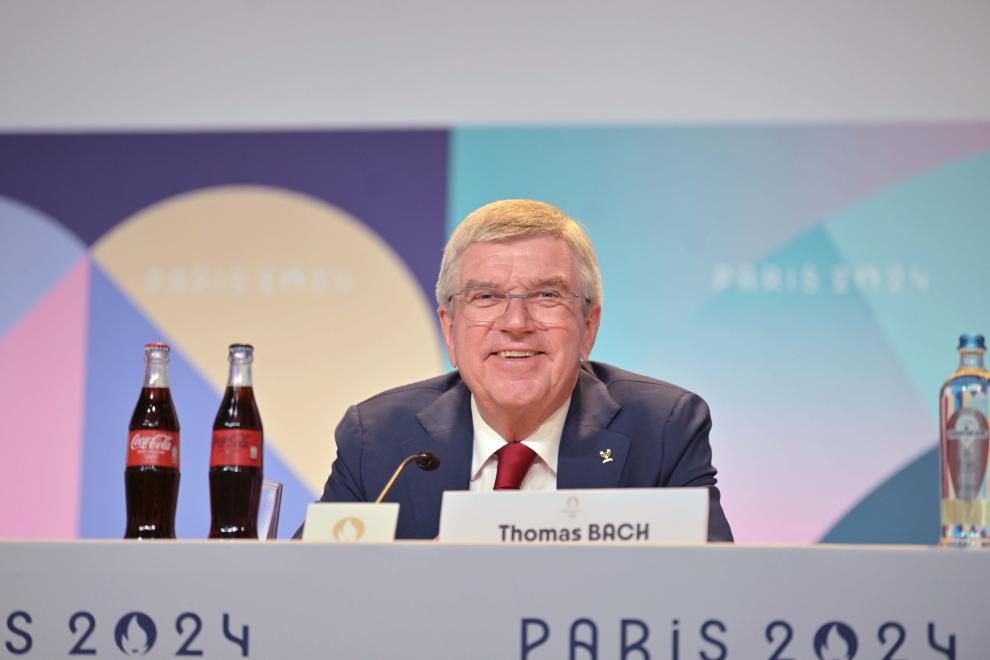 7月23日,國際奧委會主席巴赫在新聞發(fā)布會上。當日,第142屆國際奧林匹克委員會全會首日新聞發(fā)布會在法國巴黎舉行。新華社記者 侯昭康 攝