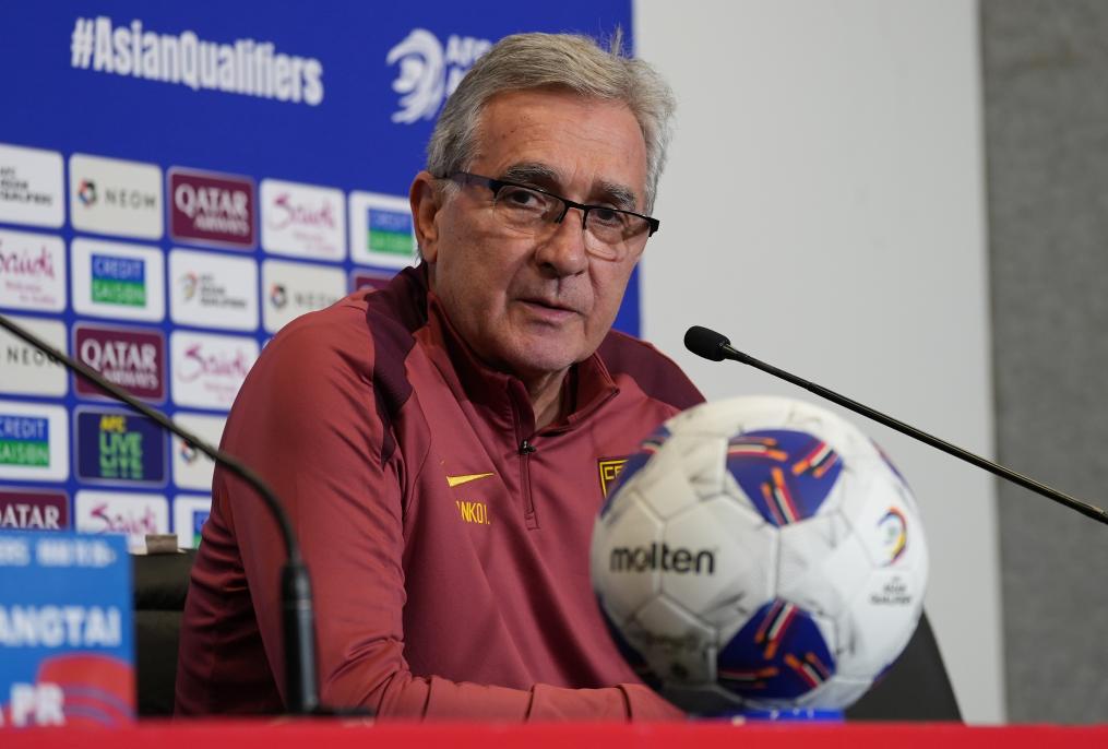 10月9日,中國(guó)隊(duì)主教練伊萬科維奇在發(fā)布會(huì)上。新華社發(fā)(謝思達(dá) 攝)
