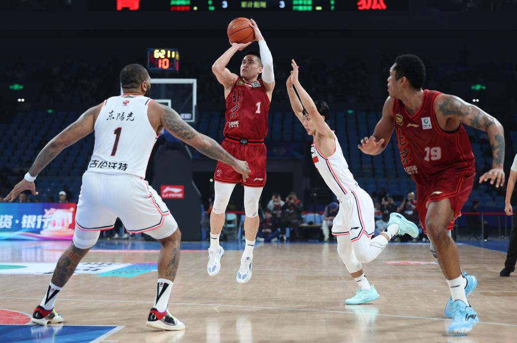 10月25日,北京隊球員陳盈駿(左二)在比賽中投籃。新華社記者 王楷焱 攝