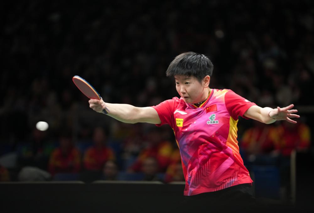 12月3日,中國隊(duì)選手孫穎莎在女單比賽中。新華社記者 江宏景 攝