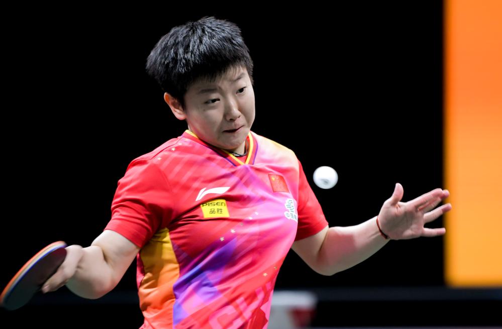 12月4日,中國隊選手孫穎莎在女單比賽中回球。新華社記者 王曦 攝