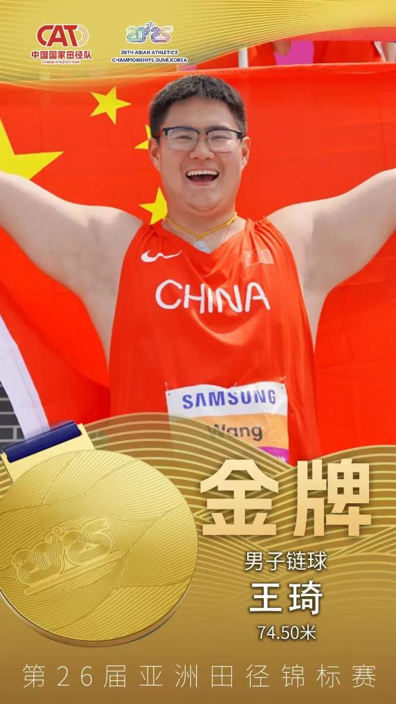 當(dāng)日上午率先進(jìn)行的男子鏈球決賽中,中國隊(duì)名將王琦以74米50的成績(jī)力壓兩名日本選手奪冠。女子1500米比賽中,“00后”選手李春輝以4分10秒58的成績(jī)奪冠,大幅提升個(gè)人最好成績(jī)。此外,女子撐桿跳高比賽中,中國隊(duì)選手牛春格以4米48的成績(jī)奪冠,她的隊(duì)友徐惠琴收獲銀牌。男子十項(xiàng)全能比賽中,費(fèi)翔以7634分為中國隊(duì)再添一金。