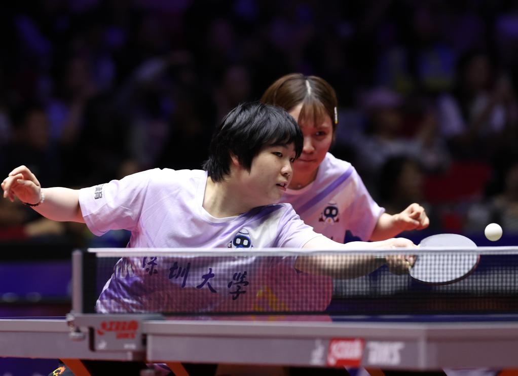 6月11日,蒯曼(左)/平野美宇在比賽中。新華社記者 楊世堯 攝