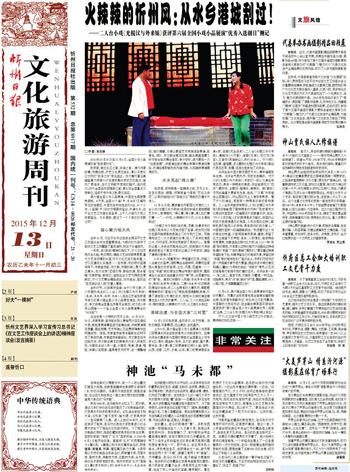 由忻州市文聯(lián)、忻州市劇協(xié)選送的二人臺(tái)小戲《光棍漢與外來(lái)妹》(表演:呂改萍、張璟、任浩)入選在江蘇省張家港市舉辦的第六屆全國(guó)小戲小品展覽演出,將與郭達(dá)、李文啟等全國(guó)著名笑星同臺(tái)競(jìng)技,成為近3年來(lái)山西唯一一個(gè)登上全國(guó)小戲小品展演舞臺(tái)的“狀元郎”!
