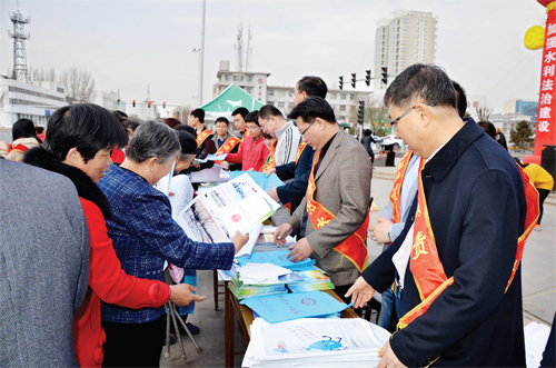 忻州市水資辦的工作人員在街頭進(jìn)行涉水法律法規(guī)和節(jié)水知識(shí)宣傳