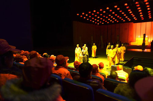 4月13日晚,五臺山風(fēng)景名勝區(qū)近200名環(huán)衛(wèi)工人成為《又見五臺山》大型情境體驗劇場風(fēng)鈴宮內(nèi)的座上賓。五一將至,為了表達(dá)對五臺山景區(qū)美容師們——環(huán)衛(wèi)工人的感恩之情,又見五臺山劇場免費邀請200多名景區(qū)一線環(huán)衛(wèi)工人免費觀看節(jié)目,為大家送上了一份精神大餐。