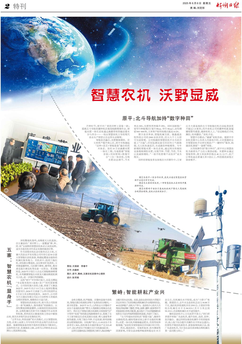 芒種時節(jié),原平市廣袤的田野上景象一新:搭載北斗導航的播種機沿規(guī)劃線路精準作業(yè),智能水肥一體化系統(tǒng)通過滴灌帶悄然輸送著水分與養(yǎng)分……一場由智慧農機主導的現代農業(yè)生產圖景正在這里生動展現。