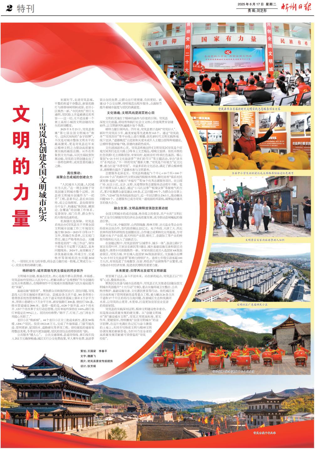 岢嵐縣的實踐深刻證明,精神文明建設(shè)絕非虛功,而是推動高質(zhì)量發(fā)展的硬支撐。從“創(chuàng)建文明城市”到“建設(shè)城市文明”,岢嵐正用更高標準、更實作風、更暖情懷,持續(xù)擦亮“全國文明城市”的金字招牌,在這片充滿紅色記憶與奮斗激情的土地上,共同書寫物質(zhì)文明與精神文明協(xié)調(diào)發(fā)展的嶄新答卷,為忻州乃至全省的高質(zhì)量發(fā)展貢獻著可資借鑒的“岢嵐經(jīng)驗”。