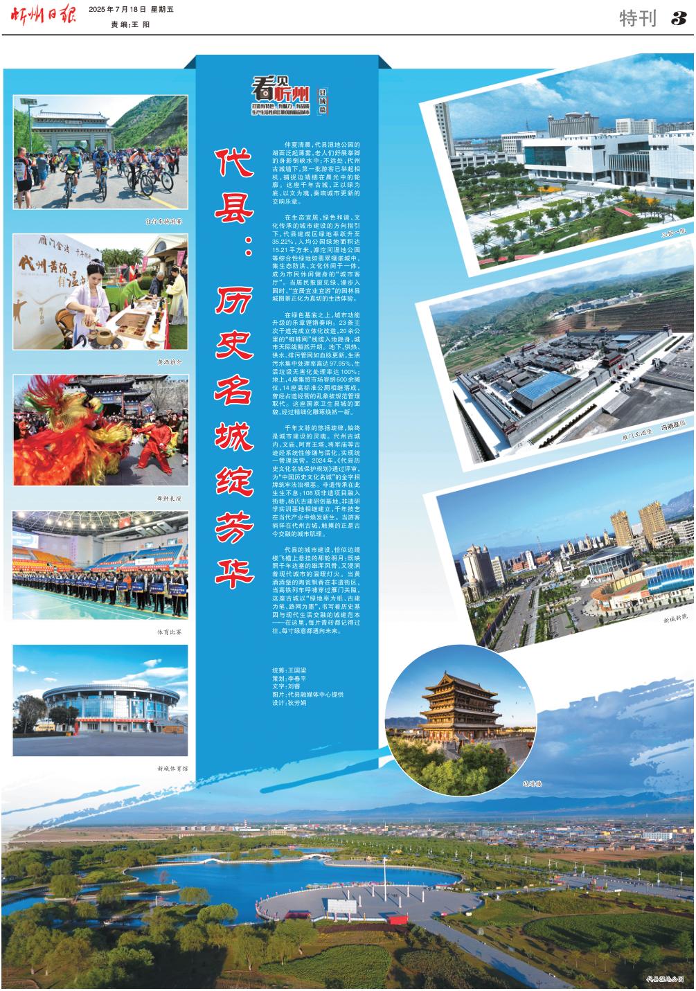 仲夏清晨,代縣濕地公園的湖面泛起薄霧,老人們舒展拳腳的身影倒映水中;不遠處,代州古城墻下,第一批游客已舉起相機,捕捉邊靖樓在晨光中的輪廓。這座千年古城,正以綠為底、以文為魂,奏響城市更新的交響樂章。