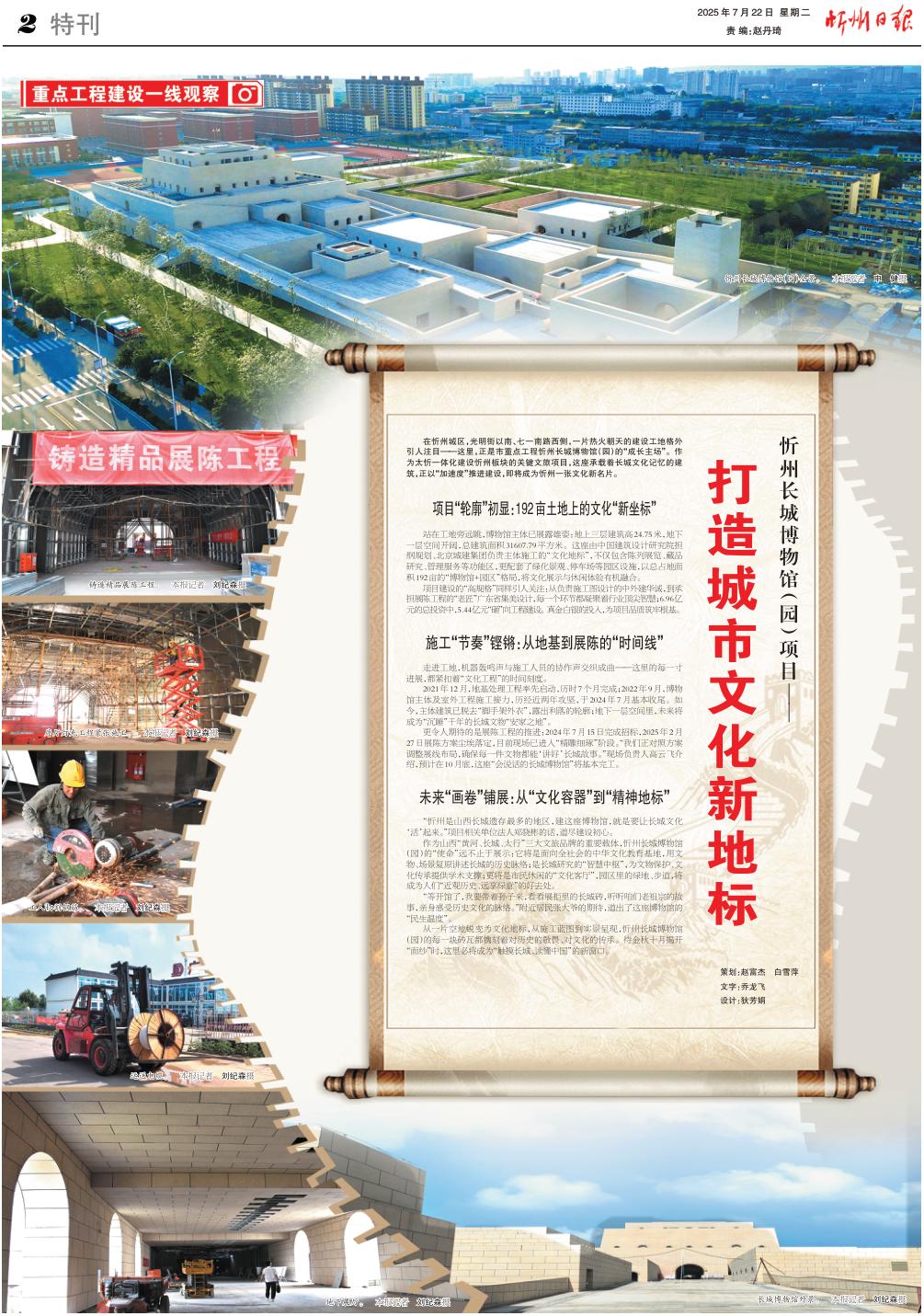 從一片空地蛻變?yōu)槲幕貥?,從施工藍圖到實景呈現(xiàn),忻州長城博物館(園)的每一塊磚瓦都鐫刻著對歷史的敬畏、對文化的傳承。待金秋十月揭開“面紗”時,這里必將成為“觸摸長城、讀懂中國”的新窗口。