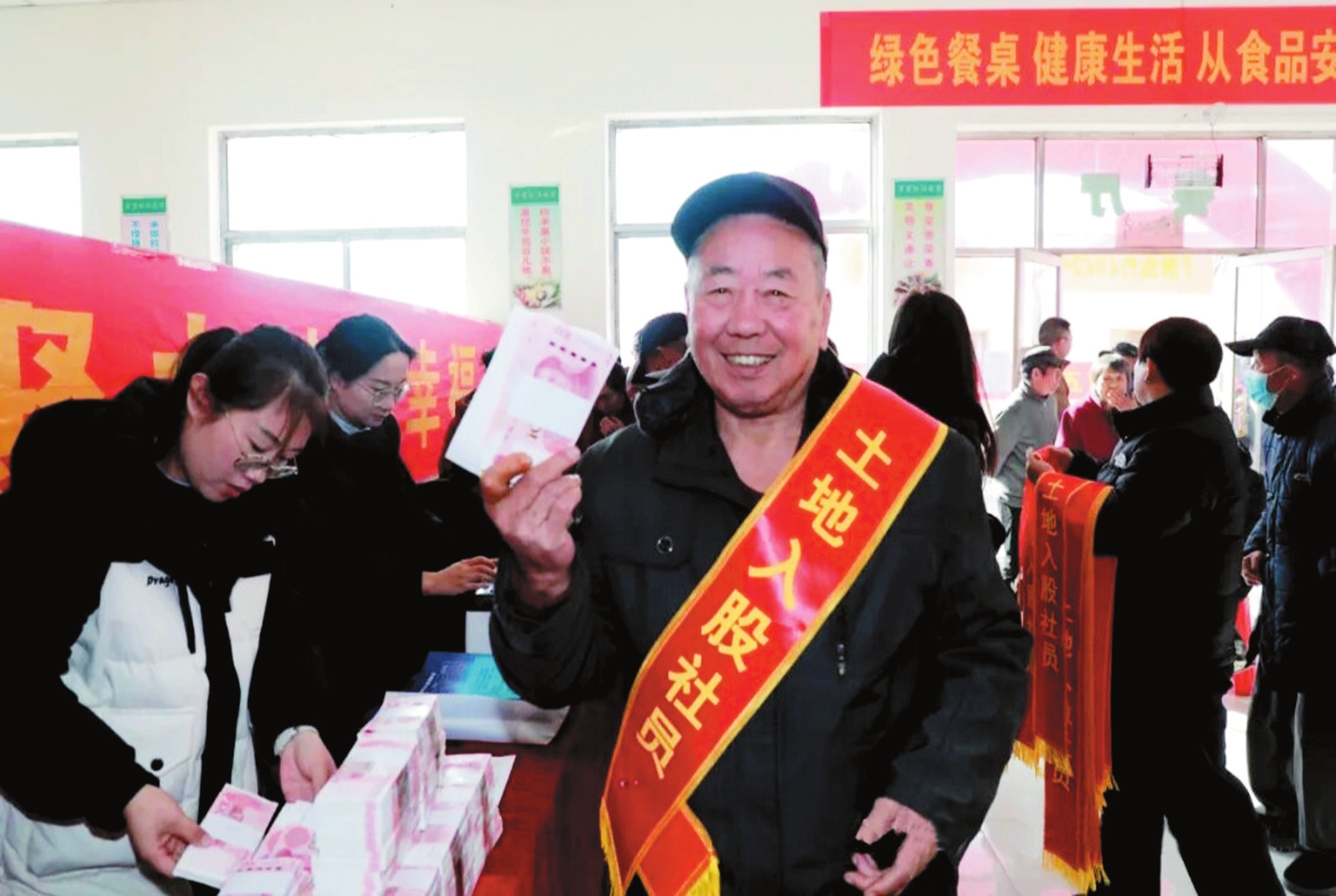 分紅大會現(xiàn)場人頭攢動,氣氛熱烈。長者社員、普通社員、土地入股社員代表依次上臺發(fā)言并領(lǐng)取分紅金,分享了參與項(xiàng)目后的增收獲得感,生動詮釋了“共富”的內(nèi)涵。統(tǒng)種富民專業(yè)合作社負(fù)責(zé)人介紹了項(xiàng)目運(yùn)營情況,詳細(xì)講解了“統(tǒng)種共富”模式下土地集約、產(chǎn)業(yè)協(xié)同的實(shí)踐成果。相關(guān)單位負(fù)責(zé)人作表態(tài)發(fā)言,明確了后續(xù)支持鄉(xiāng)村產(chǎn)業(yè)發(fā)展的工作方向。